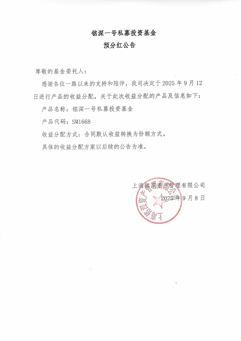 外贸信托•铭深1号信托计划2014年第一次分红 2025-08-18
