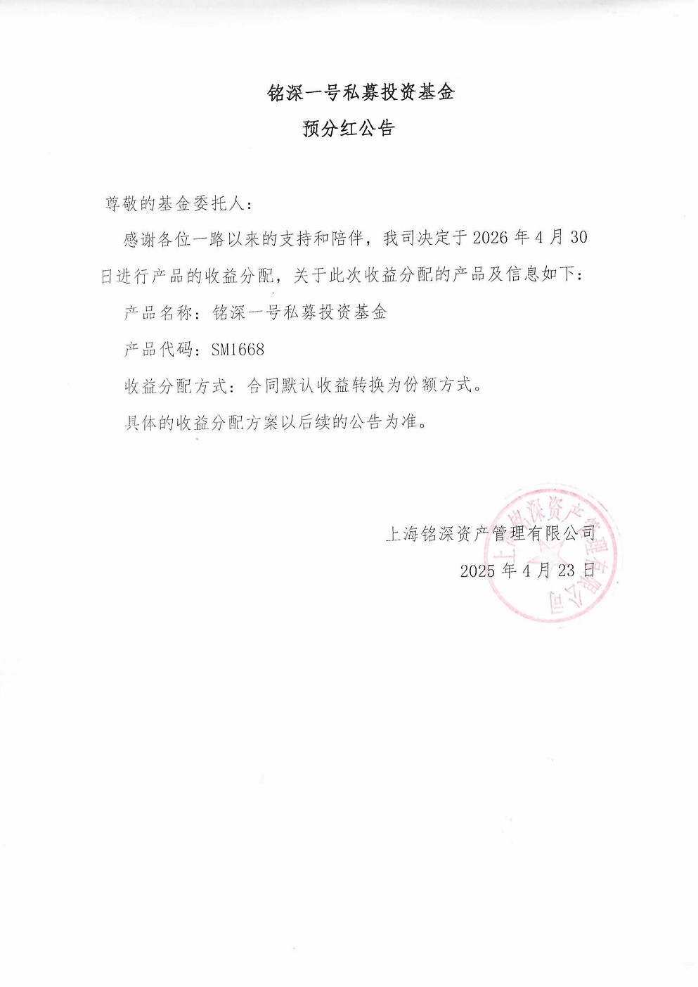 外贸信托•铭深1号信托计划2015年第一次分红 2025-08-18